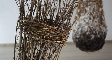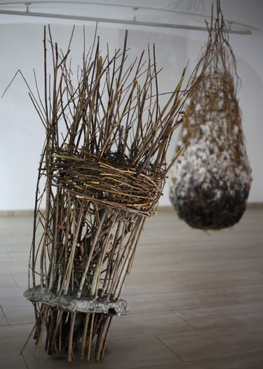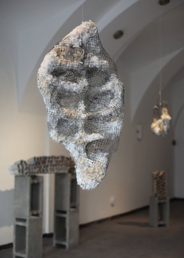 Júlia Káčerová is a young sculptor whose work explores the tension between solidity and fragility. She operates at the intersection of geometric and organic forms that evoke nests, embryonic or structural shapes - symbols of protection and birth. Her works are meditations on permanence and loss, decay, but also renewal. She often uses natural materials, which largely determine the final form of the sculpture or object.
