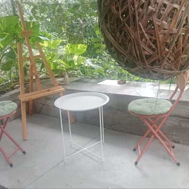 The studio is equipped with basic tools including tables, lamps, a shared toolkit (scissors, knives, rulers, pliers), extension cords, a Bluetooth speakers, projector, push pins, clips, paper, paint, sketching materials, painting stands, paints. If your practice requires something specific, feel free to mention it in your application and we will do our best to help source it locally or find a simple solution together. The space has previously hosted dance, theatre, and music events.