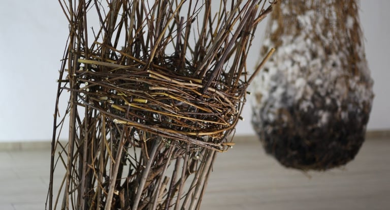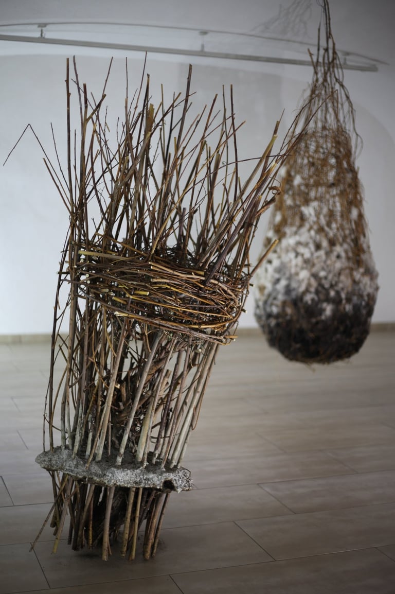 Júlia Káčerová is a young sculptor whose work explores the tension between solidity and fragility. She operates at the intersection of geometric and organic forms that evoke nests, embryonic or structural shapes - symbols of protection and birth. Her works are meditations on permanence and loss, decay, but also renewal. She often uses natural materials, which largely determine the final form of the sculpture or object.