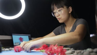 Raito Low (劉靜怡) is an experimental animation artist specializing in stop-motion techniques. Her work explores the intersections of nature, the female body, and environmental themes, often incorporating organic materials such as plants, stones, and other natural elements. Through poetic visual narratives, she reflects on the fragility of life and the eternal cycles of nature, blending animation, video art, and multimedia installations to evoke a profound sensory connection to the environment.
